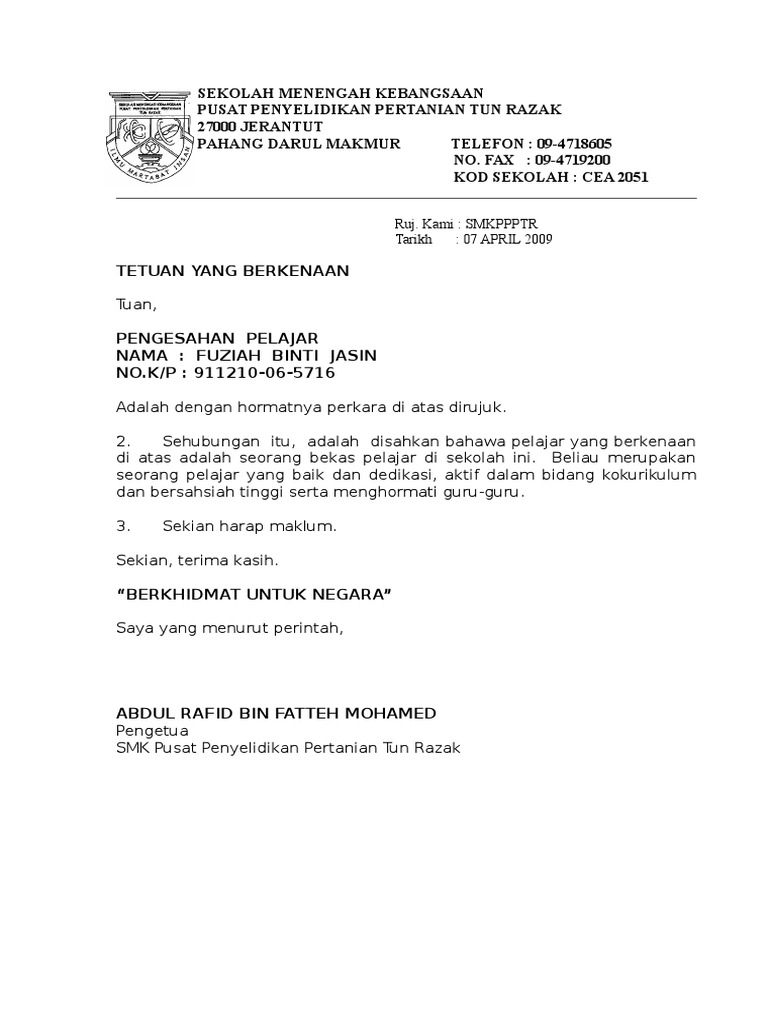 For more information and source, see on this link : Jika hasil pemeriksaan dokter menganjurkan untuk perawatan intensif atau istirahat selama beberapa hari. Contextual translation of surat akuan pelajar sekolah into english. Pdf contoh surat mohon kebenaran jpn kajian utm asma a shukri academia edu. Pdf contoh surat mohon kebenaran jpn kajian utm asma a shukri academia edu.